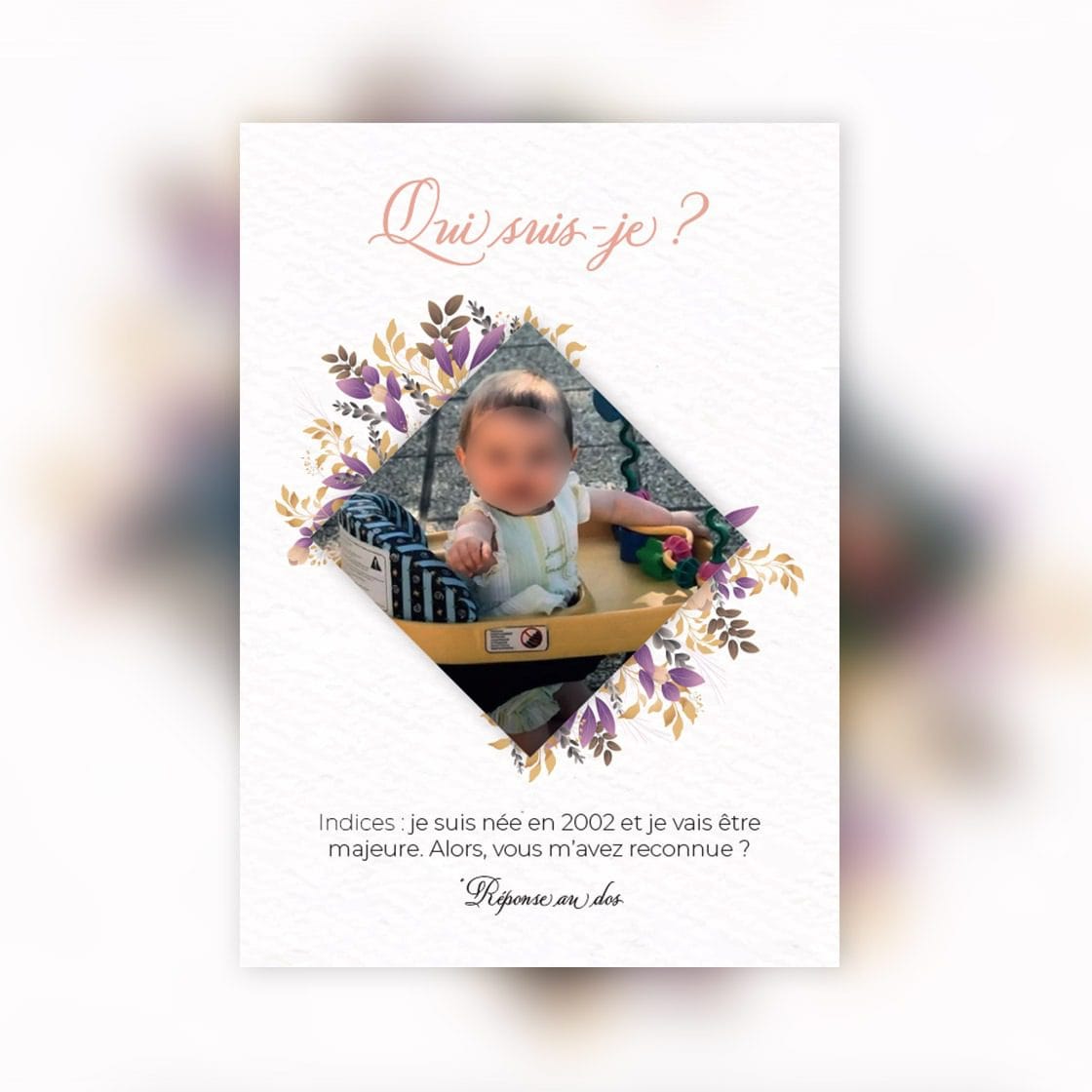 Carte d'invitation d'anniversaire 18 ans pour une jeune femme.